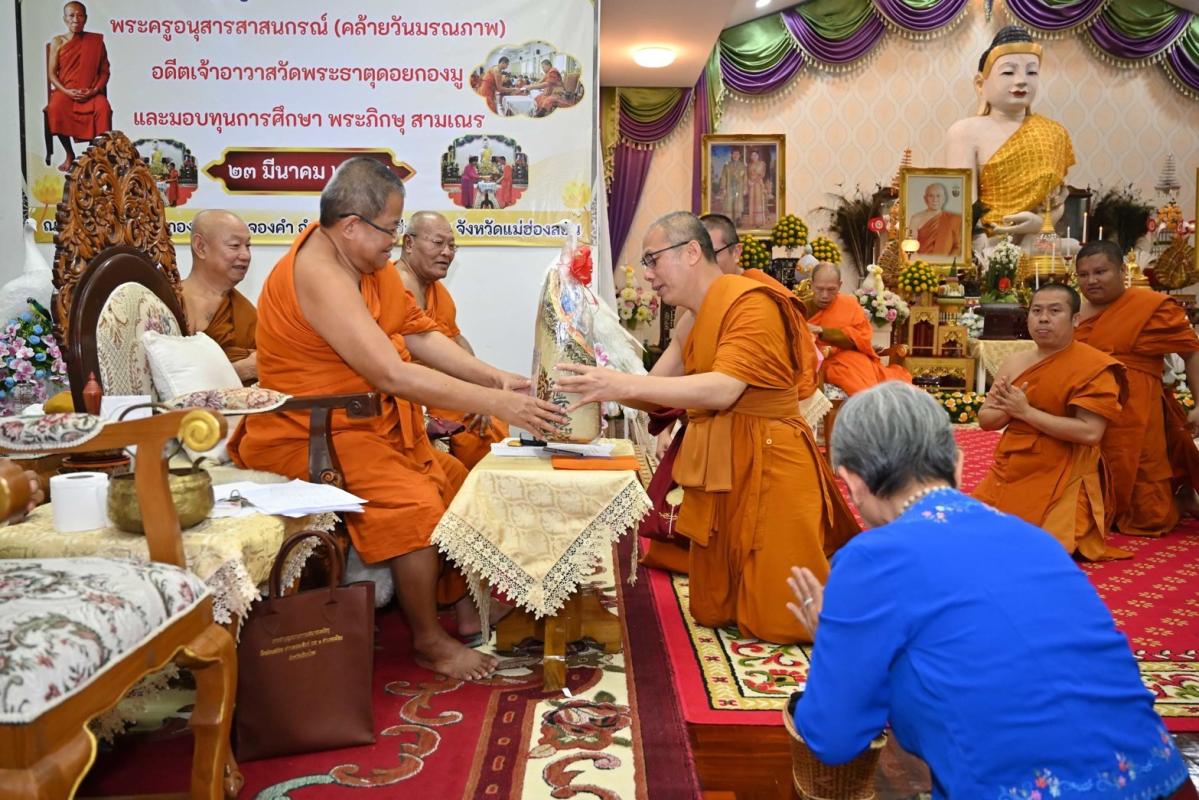 เพื่อระลึกถึงคุณความดีของหลวงพ่อที่ได้ปฏิบัติ แนะนำ พร่ำสอน นำศรัทธา ญาติโยมพัฒนาวัด นำธรรมคำสอนขององค์สมเด็จสัมมาสัมพุทธเจ้า มาเผยแผ่ สอนลูกศิษย์ลูกหาได้นำไปใช้ ในชีวิตประจำวัน ให้อยู่ในสังคมอย่างสงบสุขร่มเย็น มีสติในการดำเนินชีวิต โดยมีพิธีทางศาสนา เพื่ออุทิศบุญกุศลแก่อดีตเจ้าอาวาสวัดพระธาตุดอยกองมู และได้มีการมอบทุนการศึกษาแก่พระภิกษุ สามเณร จำนวนกว่า 100 รูป.
