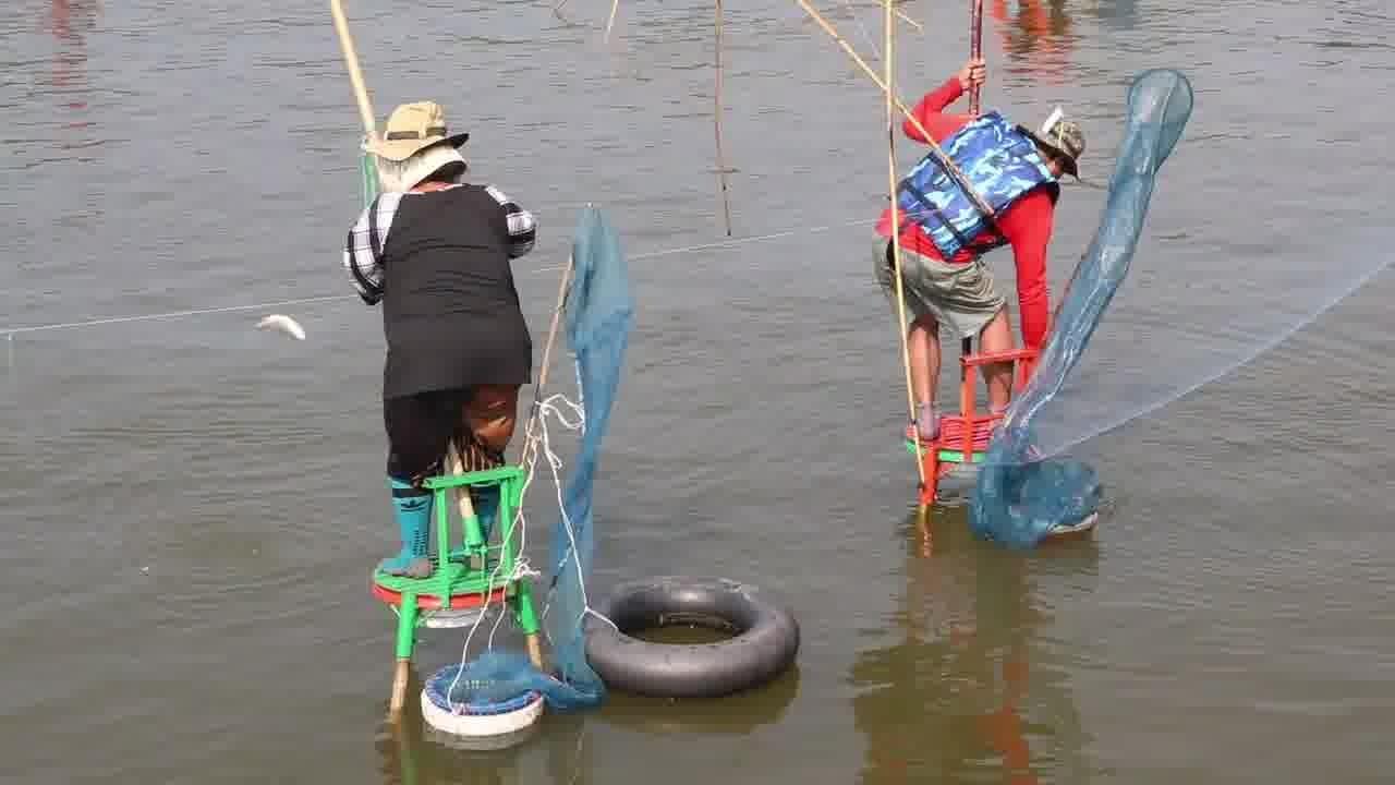 ..บรรยากาศภายในกิจกรรมเป็นไปด้วยความสนุกสนาน โดยผู้ร่วมกิจกรรม ได้นำเครื่องมือจับปลา เช่นแห ยอ หรือที่ภาคอีสานเรียกว่าสะดุ้ง นำมาเป็นเครื่องมือจับปลา โดยปลาที่จับได้ก็จะเป็นประเภทปลานิล ปลาจีน ปลาตะเพียน ปลากราย ท่ามกลางเสียงเชียร์ของผู้เข้าร่วมกิจกรรมรอบสระน้ำดังกึกก้องไปทั่วบริเวณ นอกจากนี้ยังมีพ่อค้าแม่ค้านำอาหารพื้นบ้าน เครื่องดื่มน้ำดื่ม ขนมขบเคี้ยวผลไม้ต่างๆมาจัดจำหน่ายเสริมสร้างรายได้เข้าครัวเรืออีกด้วย