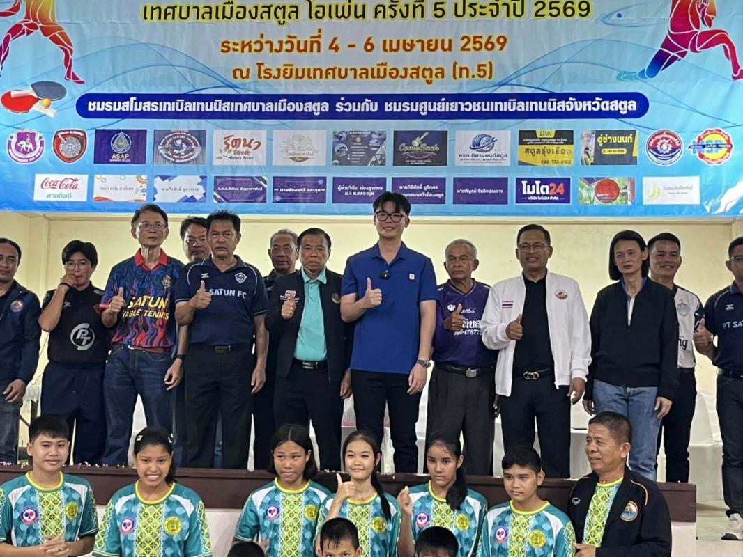 เมื่อวันที่ 4 เมษายน 2569 ที่อาคารยิมเนเซี่ยมเทศบาลเมืองสตูล จ.สตูล นายพีรพัฒน์ รัชกิจประการ นายกสมาคมกีฬาแห่งจ.สตูล ประธานในพิธีเปิดการแข่งขันกีฬาเทเบิลเทนนิส”เทศบาลเมืองสตูลโอเพ่นครั้งที่5” โดยมีนายสัมฤทธิ์ เลียงประสิทธิ์ นายกอบจ.สตูล นายกิติศักดิ์ มูสิกสง นายกเทศมนตรีเมืองสตูล นายดาลัน นุงอาหลี รองนายกอบจ.สตูล น.ส.สุทธิรัตน์ รักษ์วงศ์ ผอ.สำนักงานการกีฬาแห่งประเทศไทย (กกท.) จ.สตูล ร่วมในพิธีเปิด.....ทั้งนี้พ.ต.ท.ชำนาญ จันทรักษ์ ประธานจัดการแข่งขันกล่าวว่า ชมรมสโมสรเทเบิลเทนนิสเทศบาลเมืองสตูล ร่วมกับชมรมศูนย์เยาวชนเทเบิลเทนนิส จ.สตูล จัดกิจกรรมดังกล่าวขึ้นมา เพื่อส่งเสริมให้เด็ก เยาวชน ประชาชน ผู้สูงอายุ ใช้เวลาว่างให้เกิดประโยชน์โดยการเล่นกีฬาออกกำลังกายและปลุกจิตรสำนึกรักษ์สุขภาพห่างไกลยาเสพติด ให้มีความสามัคคีมีน้ำใจนักกีฬา อีกทั้งยังเป็นการพัฒนาศักยภาพเด็ก เยาวชน ประชาชนทั่วไป รวมทั้งคนพิการให้มีความสามารถในการเล่นกีฬาเพื่อเป็นพื้นฐานในการพัฒนาไปสู่ความเป็นเลิศและเพื่อส่งเสริมกระตุ้นเศรษฐกิจในจ.สตูล สำหรับการจัดแข่งขันกีฬาดังกล่าวมีการแข่งขัน 18 ประเภทและคนพิการ4ประเภท มีเจ้าหน้าที่และนักกีฬารวม400คนจาก25ทีมในภาคใต้และจากประเทศมาเลเซีย จัดแข่งขันระหว่างวันที่ 4-6เมษายน 2569