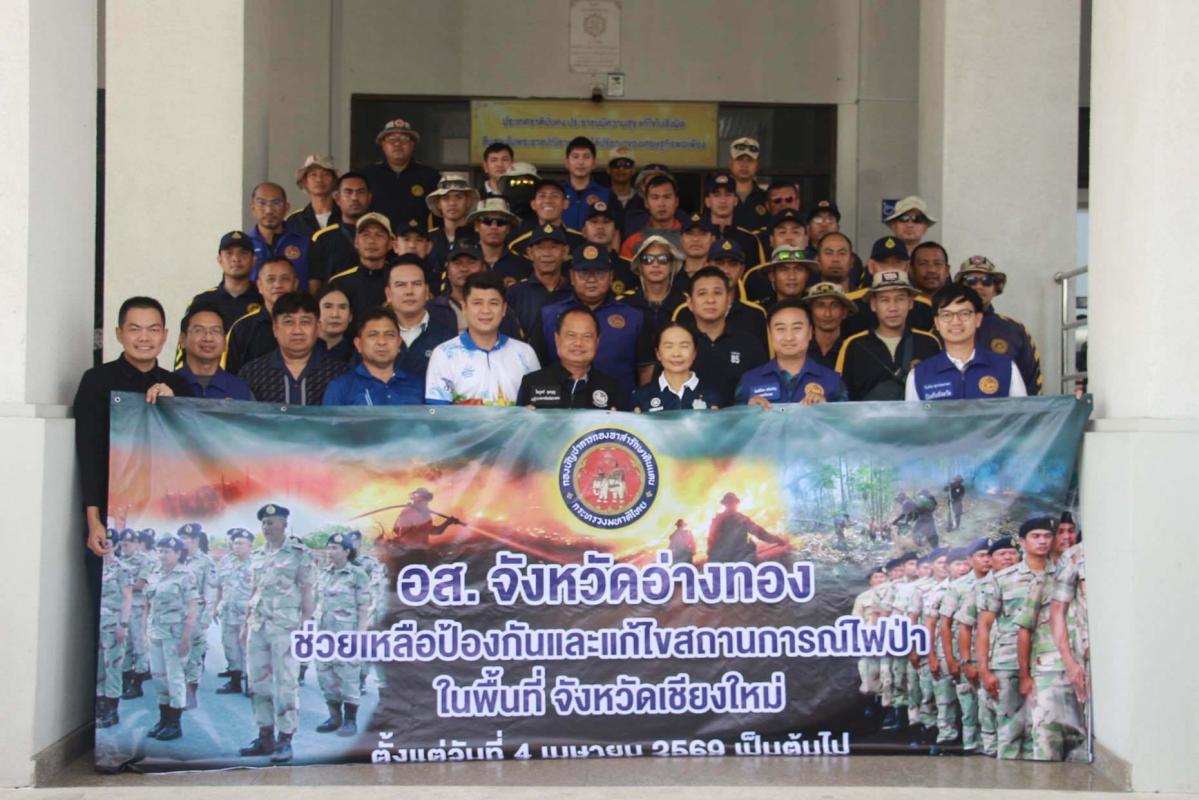 ส่งกำลังใจสมาชิก อส.อ่างทอง มุ่งหน้าเสริมกำลังดับไฟป่าเชียงใหม่
