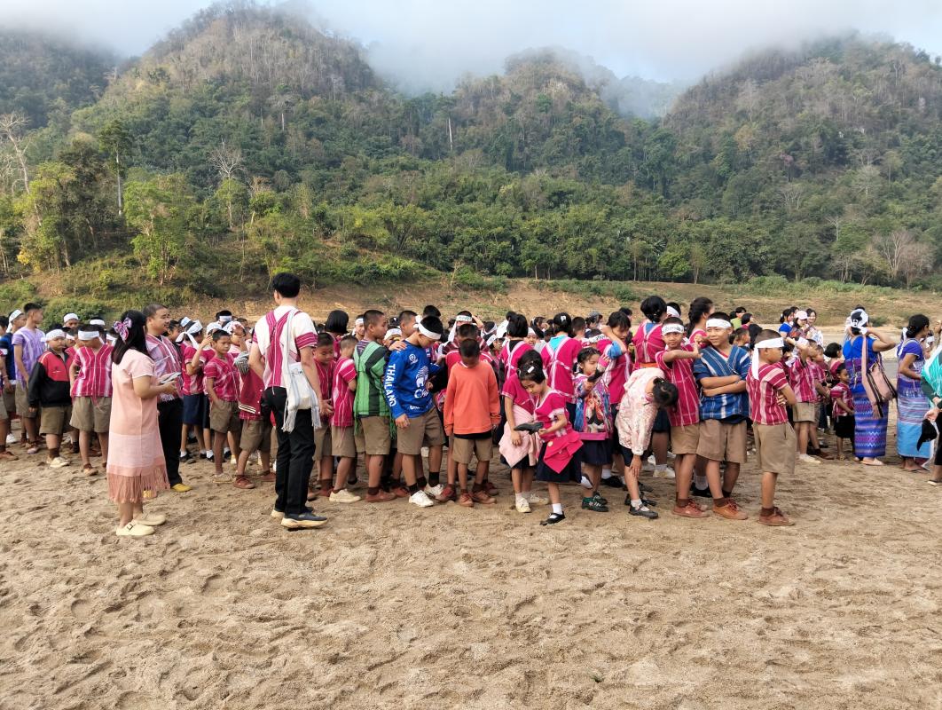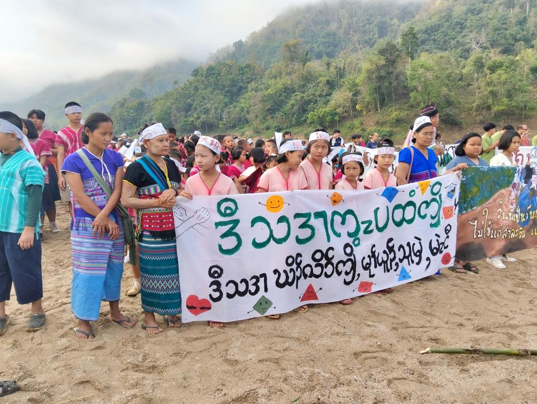 ชาวบ้านสบเมยและนักเรียนโรงเรียนบ้านสบเมยร่วมกิจกรรมวันหยุดเขื่อนโลก ที่บ้านสบเมย เพื่อแสดงจุดยืนไม่ต้องการเขื่อนตลอดเส้นแม่น้ำสาละวินอยากให้แม่น้ำสาละวินไหลอย่างอิสระ