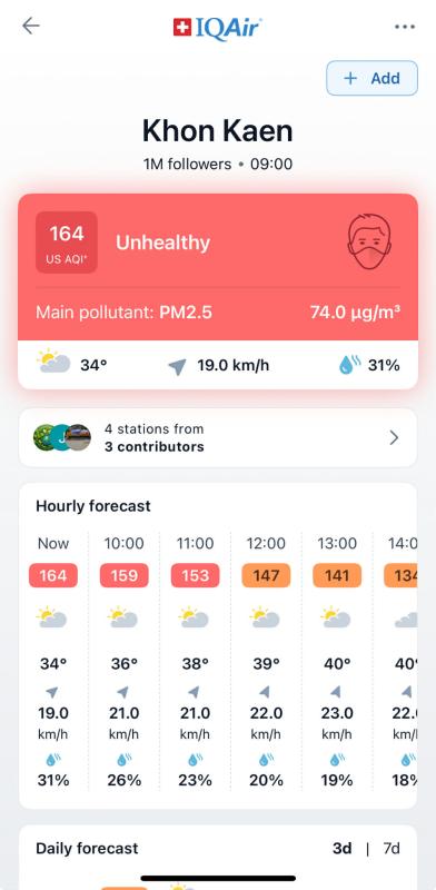 หลายพิกัดภาคอีสาน ค่าฝุ่น PM2.5 สีแดง !!! เมืองขอนแก่นค่าอากาศ 156 US AQI ส่งผลกระทบต่อสุขภาพ