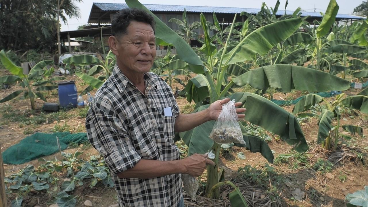 เพื่อขยายเชื้อและรับสารชีวภัณฑ์กลับไปใช้ พ่อสมศักดิ์ แซ่จิว เกษตรกรวัย 64 ปี เล่าว่า