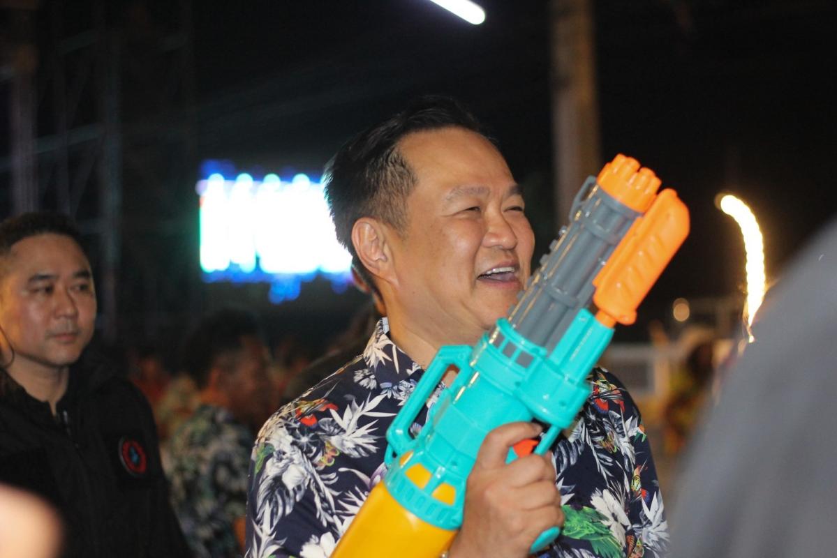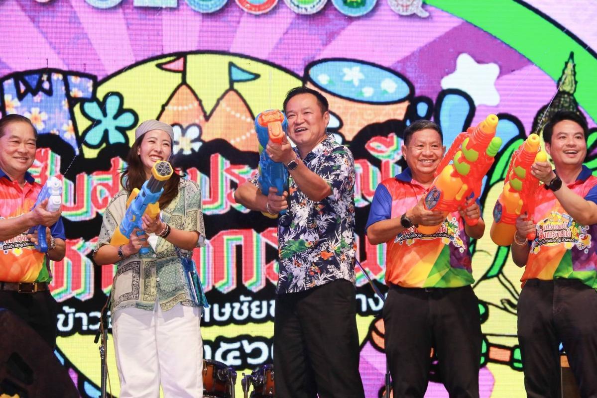 นายก ฯ หนูเบิกฤกษ์มหาสงกรานต์อ่างทอง ถนนข้าวสุก @วิเศษชัยชาญ” ฉีดน้ำเล่นกับนักท่องเที่ยวสุดสนุก