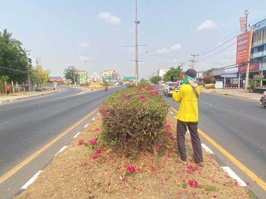 ✨วันนี้(20/4/69) พวกเค้าออกตัดหญ้า และตัดแต่งภูมิทัศน์เกาะกลางช่วงแยกศาลาแดง- สะพานลำท่าแดงเข้าวงเวียนอ่างทอง และเกาะกลางหน้าบ้านพักชลประทาน