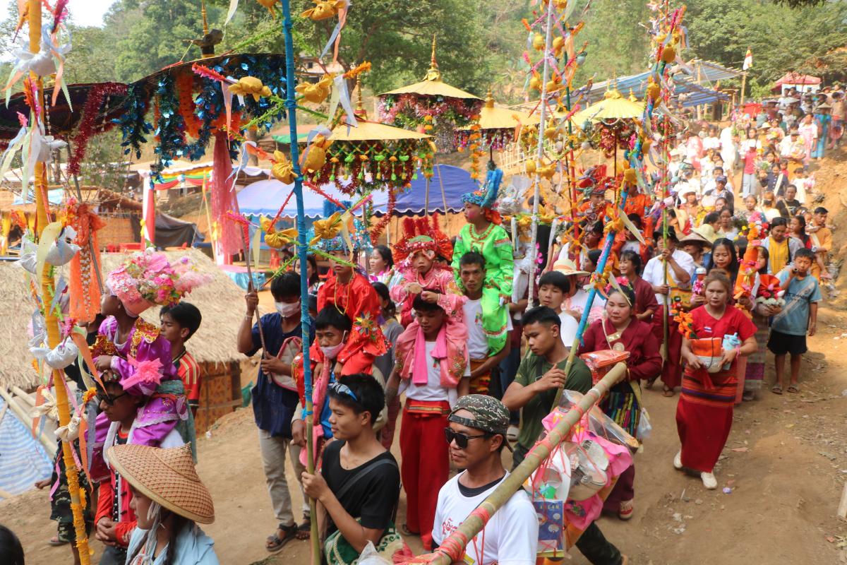บรรยากาศที่หมู่บ้านกองมุ่งเมือง พื้นที่ตะเข็บชายแดนไทย-เมียนมาร์ เขตรัฐฉาน เต็มไปด้วยความคึกคักและศรัทธาของพุทธศาสนิกชน เมื่อวัดจิตตะสุกขะอ่องหมั่งกะหล่ากองมุ่งเมือง และผู้นำหมู่บ้านกองมุ่งเมือง ได้จัดงานประเพณี “ปอยส่างลอง” ประจำปี 2569 ระหว่างวันที่ 20-22 เมษายนที่ผ่านมา เพื่ออนุรักษ์และสืบสานวัฒนธรรมอันงดงามของชาวไทยใหญ่ให้คงอยู่สืบไป
