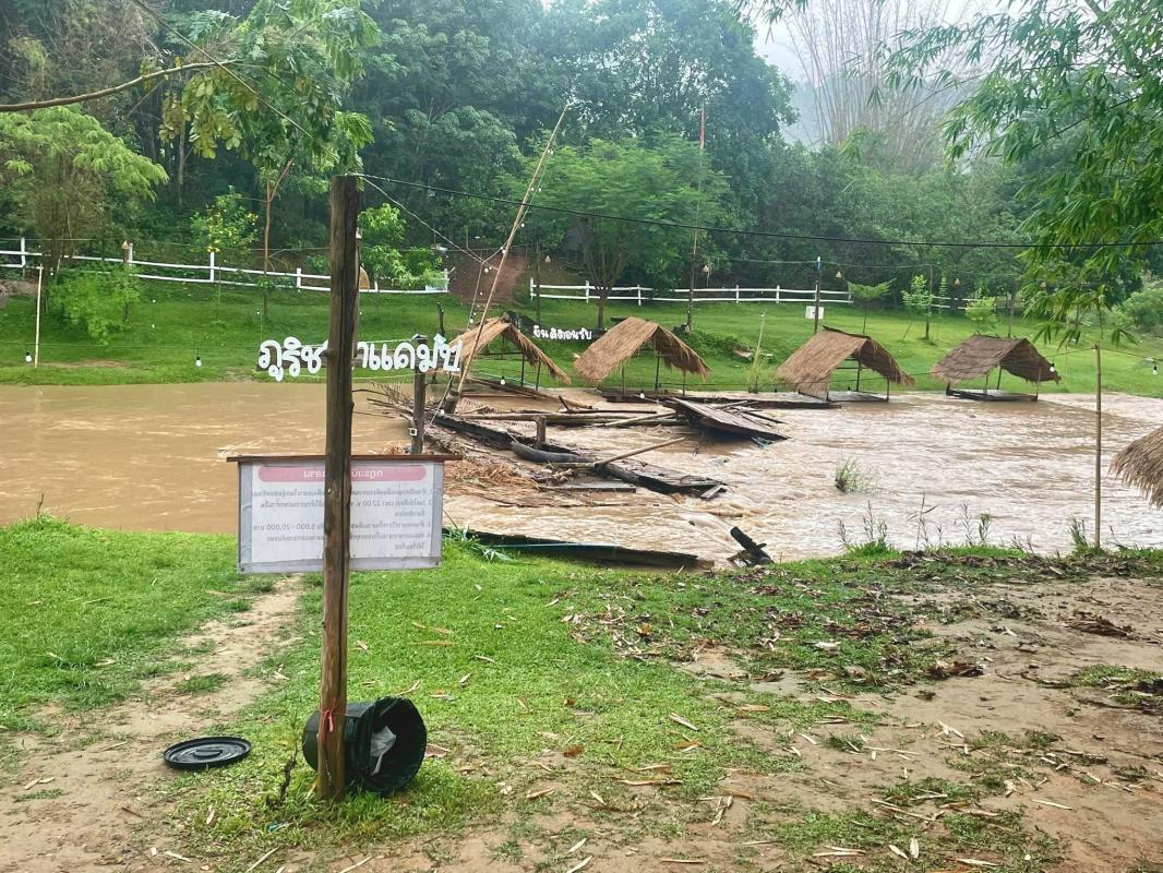 โดยสามอำเภอข้างต้น ตลอดช่วงเย็นถึงสายวันนี้ยังไม่มีการรายงานความเสียหายเข้ามา แต่ที่อำเภอท่าปลา ได้รับรายงานว่า ช่วงเวลา 21.30น.ถึง22.50น มีฝนตกหนักน้ำป่าไหลหลาก เอ่อล้นเข้าท่วมสถานประกอบการริมน้ำอย่างรวดเร็ว..บ่ายวันนี้จึงได้ลงพื้นที่ พบสถานประกอบการแคมป์ปิ้งริมน้ำ บ้านแก่งทรายงาม หลายแห่งได้รับความเสียหาย โดยเร่งเก็บขยะ ซากแคร่พัก สะพานไม้เชื่อมสองฝั่งที่พังลง โดยช่วงบ่ายโมง ระดับน้ำก็เริ่มปกติแล้ว โดยสถานประกอบการยังคงเปิดบริการเช่นเดิม ส่วนที่เสียหายก็เร่งปรับปรุงกันไป...