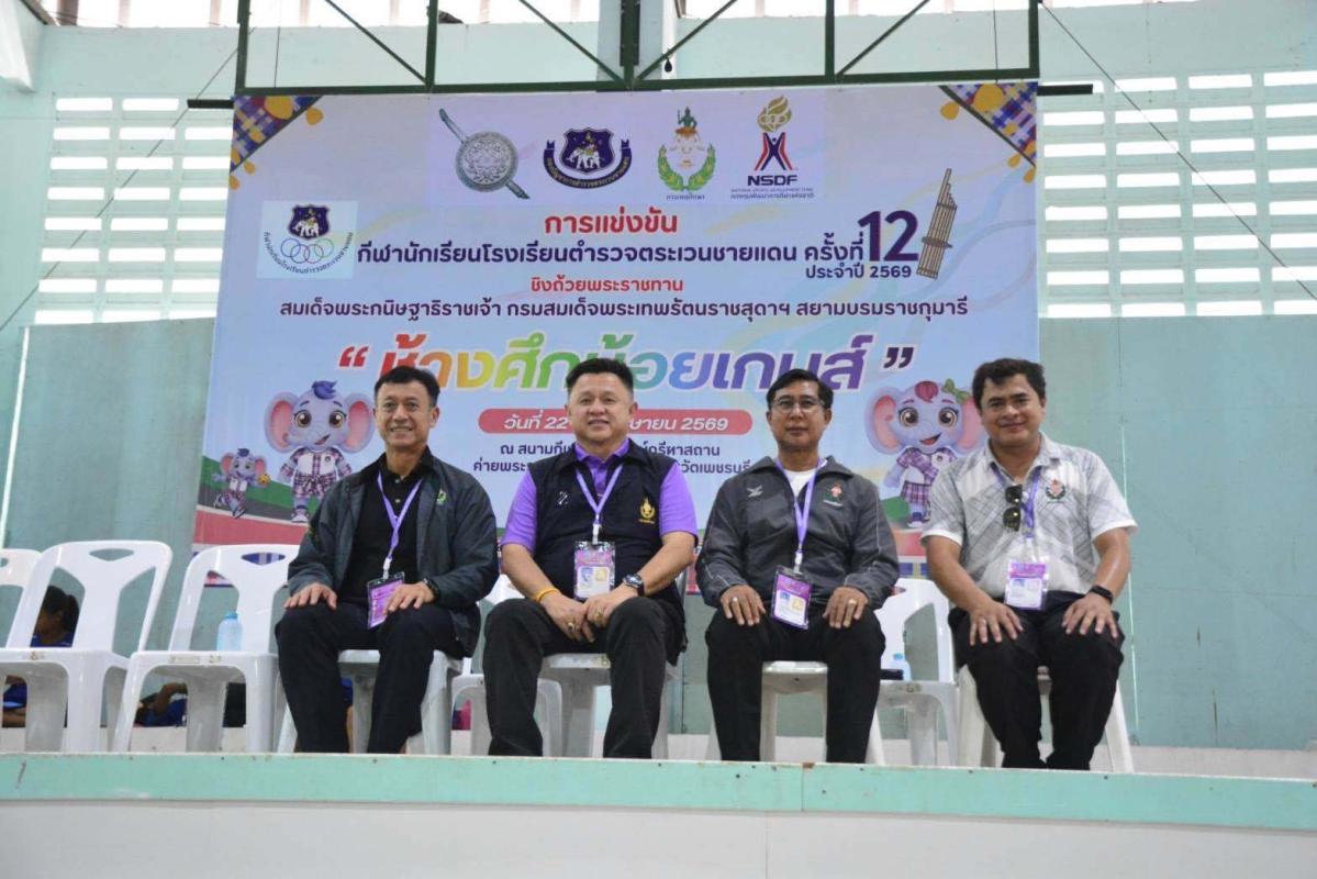 นายมงคล วิมลรัตน์ อธิบดีกรมพลศึกษา มอบหมายให้ นายสุรัตน์ จรณโยธิน รองอธิบดีกรมพลศึกษา พร้อมด้วย นายอดุลยชาติ ขันธมะ ผู้อำนวยการสถาบันพัฒนาบุคลากรการพลศึกษาและการกีฬา ว่าที่ร้อยตรี นรภัทร แย้มสรวล ผู้เชี่ยวชาญเฉพาะด้านส่งเสริมและพัฒนานันทนาการ ร่วมเยี่ยมชมการแข่งขันและให้กำลังใจแก่นักกีฬา พร้อมมอบถ้วยรางวัลและเหรียญรางวัล แก่ผู้ชนะการแข่งขันกีฬาต่าง ๆ ในการแข่งขันกีฬานักเรียนโรงเรียนตำรวจตระเวนชายแดน ครั้งที่ 12 ประจำปี 2569 “ช้างศึกน้อยเกมส์”