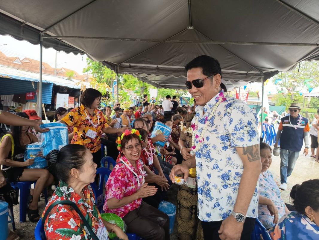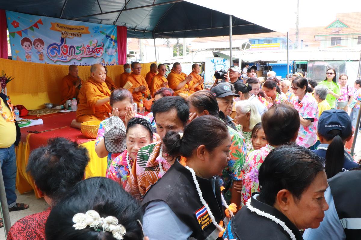 • กราบไหว้สิ่งศักดิ์สิทธิ์และรดน้ำดำหัว: นายอำนวย บุญริ้ว นายกเทศมนตรีฯ ได้นำคณะกราบไหว้สิ่งศักดิ์สิทธิ์และศาลเจ้าแม่ตะเคียนประจำหมู่บ้าน ก่อนจะเข้าสู่พิธีรดน้ำดำหัวขอพรจากผู้สูงอายุในชุมชนกว่า 100 คน เพื่อแสดงความกตัญญูกตเวที