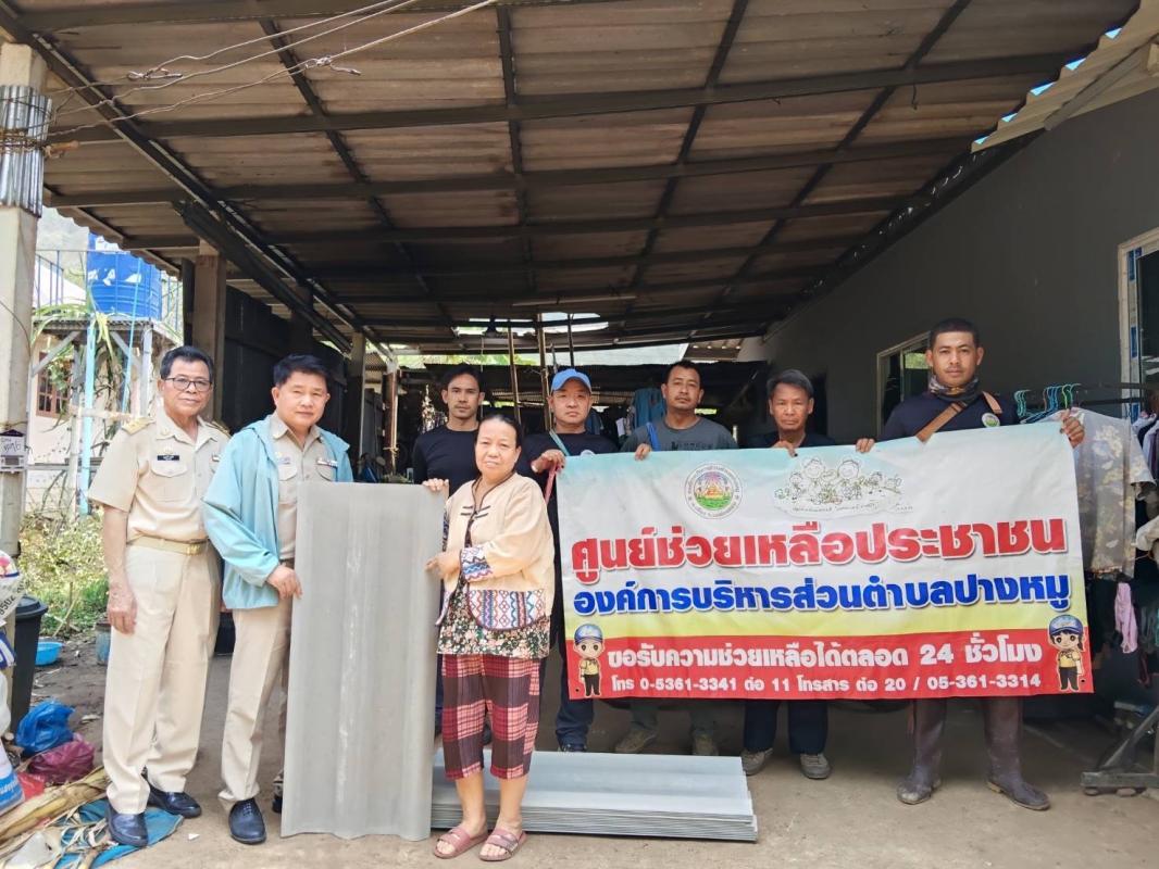 นายกองค์การบริหารส่วนตำบลปางหมู สั่งการเร่งด่วน ช่วยเหลือชาวบ้านที่ประสบเหตุพายุพัดถล่มบ้านเสียหายหลายหลังคาเรือน
