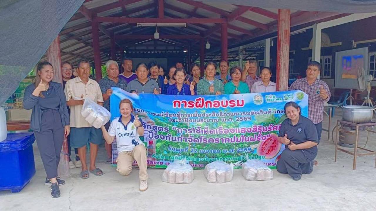 อบรมหลักสูตร ? “การใช้เห็ดเรืองแสงสิรินรัศมีป้องกันกำจัดโรครากปมในฝรั่ง”